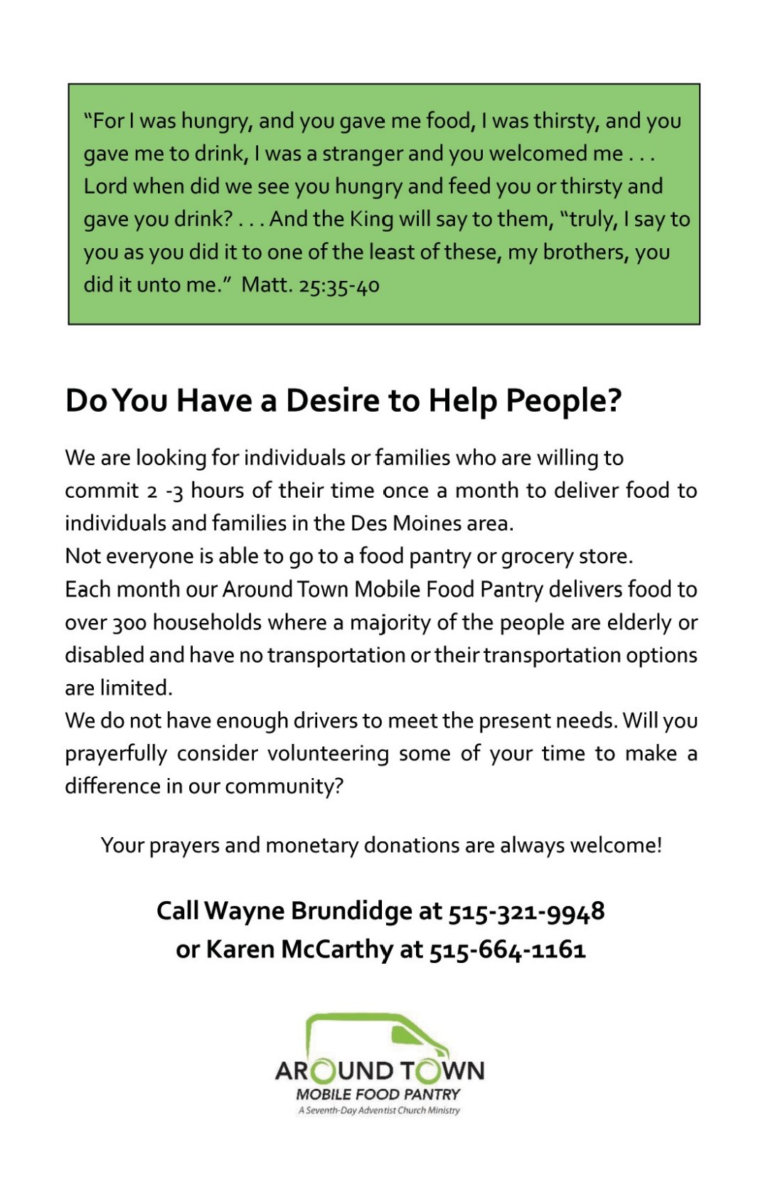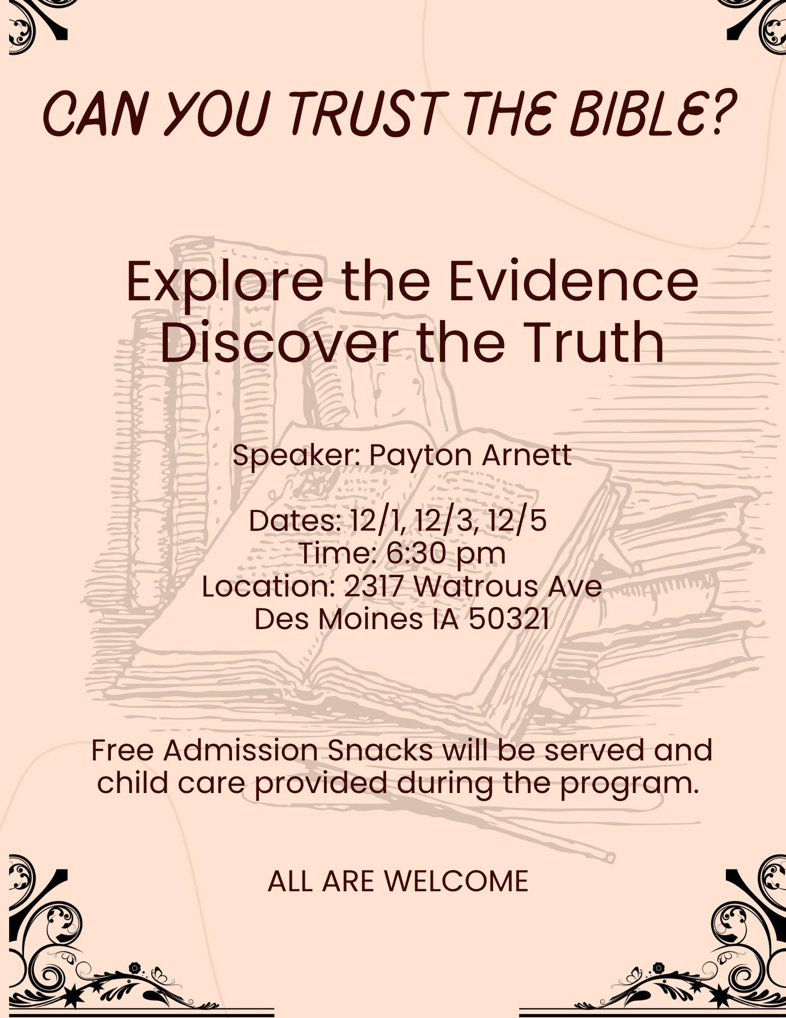 Please come and visit us this Saturday for worship and praise of our Heavenly Father!
